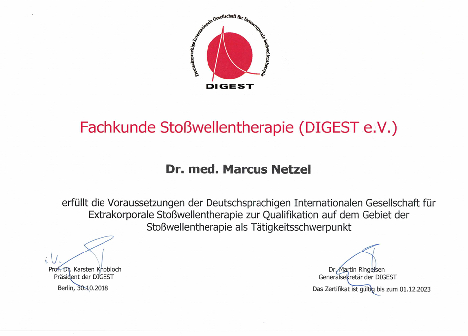 Fachkunde fokussierte Stoßwellentherapie nach DIGEST